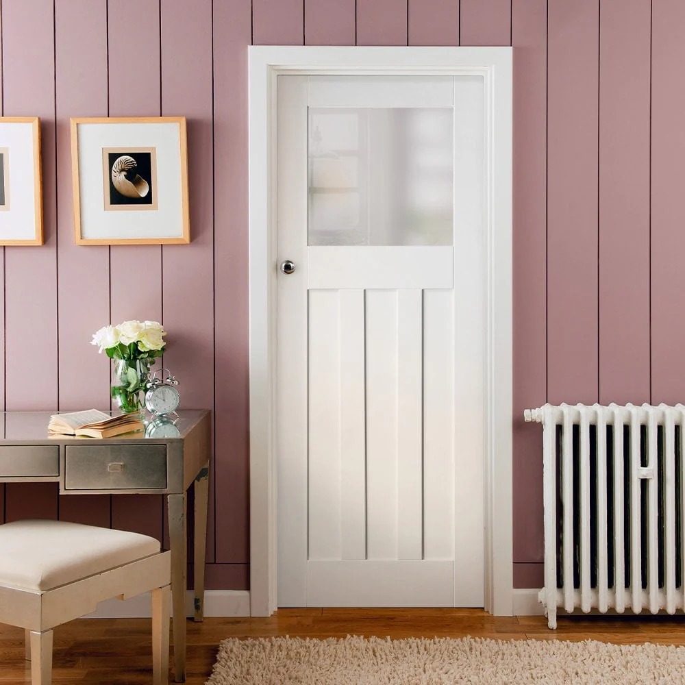 White Internal Primed 1930’s DX 1 Light Obscure Glass Door